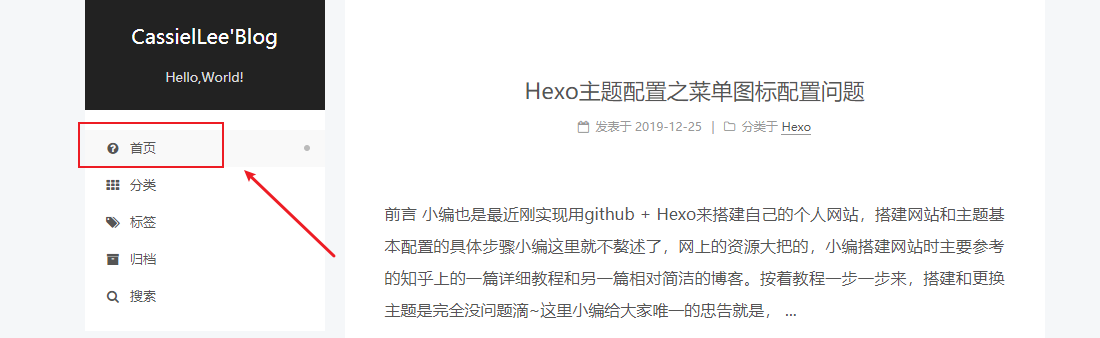 原因:小编当时也在网上搜了很多帖子,每一个修改步骤都是按照帖子里面来的,先修改主题配置文件中的menu配置,然后再修改menu_icons的配置,但是无论怎么改都是不生效;后来小编发现,在最新版的next主题中,菜单图标设置已经不是通过menu_icons属性设置了,这个属性只用于设置是否显示图标,新版主题设置直接就在menu属性中,例如: