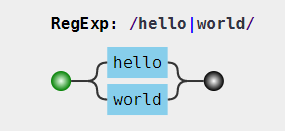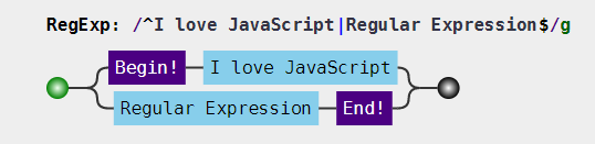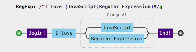 例如/^I love (JavaScript|Regular Expression)$/和/^I love JavaScript|Regular Expression$/这两个分支的可视化分别为: