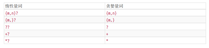 const r1 = /\d{3,7}/g; const r2 = /\d{3,7}?/g; const testString = "123 1234 12 12345 1 123456"; console.log(testString.match(r1)); //[ '123', '1234', '12345', '123456' ] console.log(testString.match(r2)); //[ '123', '123', '123', '123', '456' ]通过在量词后面加个问号就能实现惰性匹配,因此所有惰性匹配情形如下: