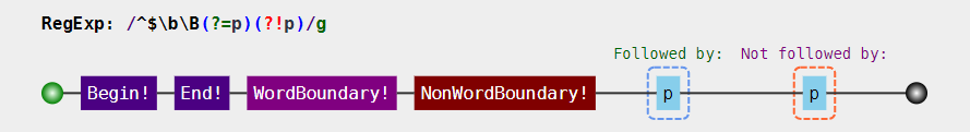 在 ES5 中,共有 6 个锚:^、$、\b、\B、(?=p)、(?!p),则相应的可视化形式为: