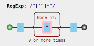 例如:匹配字符串abc"123"efg中的"123",如果正则用的是:/".*"/,因为是贪婪匹配,所以回匹配到最后一个字符是才发现匹配错误,此时需要回溯 4 次才能匹配成功;若正则采用的是:/".*?"/,此时是惰性匹配,*会优先匹配 0 次后发现后面字符无法继续匹配,此时需要回溯 2 次才能匹配成功;所以,最好的办法是采用/"[^"]*",此时不需要回溯。其可视化形式为: