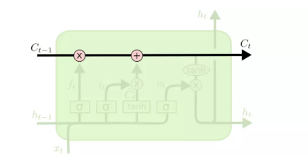 LSTM 的关键就是细胞状态,水平线在图上方贯穿运行。细胞状态类似于传送带。直接在整个链上运行,只有一些少量的线性交互。信息在上面流传并保持不变会很容易,也就是和传统的 RNN 一样,通过使用递归连接来学习记忆信息。另外 LSTM 有通过精心设计的称作为“门”的结构来去除或者增加信息到细胞状态的能力。门是一种让信息选择式通过的方法。他们包含一个 sigmoid 神经网络层和一个按位的乘法操作。