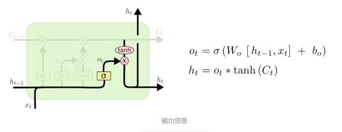 输出门是根据当前的状态和现在的输入,决定输出的应该是什么。把旧状态$\tilde{C}_{t-1}$与遗忘门的值$f_t$ 相乘,丢弃掉我们确定需要丢弃的信息。接着加上 $i_t$ 和 $\tilde{C}_t$的乘积,这就是我们要更新的内容。